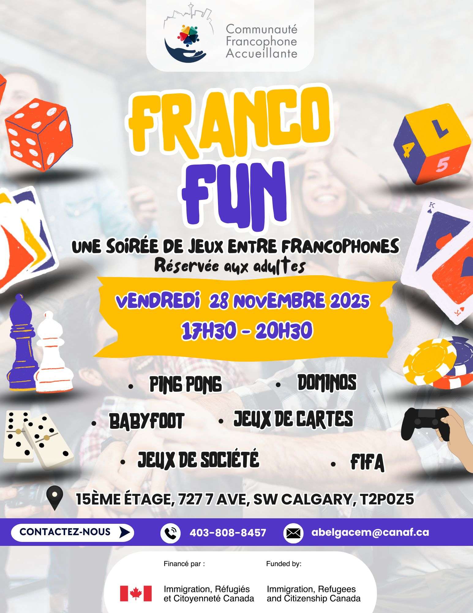 Une soirée conviviale pour jouer, socialiser et célébrer la culture francophone à travers des jeux de société variés.